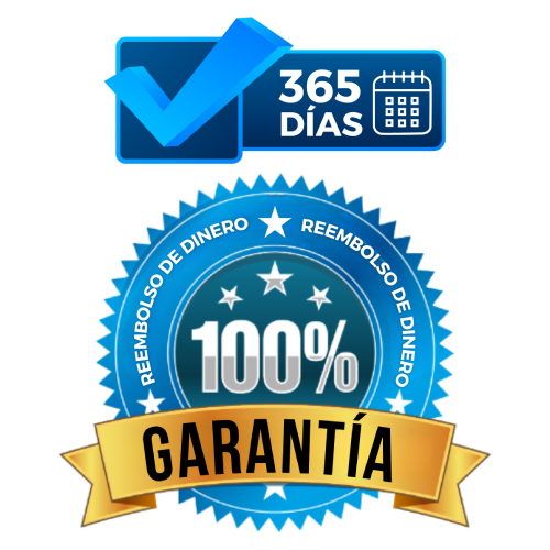 "Resultados o reembolso completo", 365 días de garantía de devolución del 100% del dinero