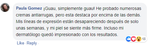 «¡Funciona! Definitivamente siento que mi piel está más firme que nunca, especialmente alrededor de los ojos. Las líneas y arrugas casi han desaparecido. ¡Es un buen producto! :)»